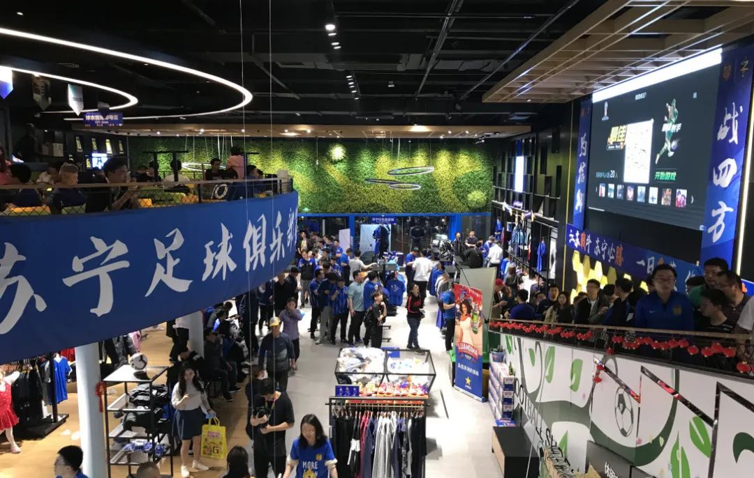 蘇寧體育奧體官方旗艦店是國內最大的足球俱樂部官方衍生品店,面積達到了700平方,分上下兩層,一樓主要是衍生品售賣區、電競娛樂區,二樓則為互動區域。