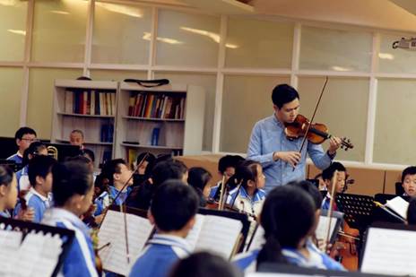 在王翔云成為丹堤實驗學(xué)校的一員之后,就將自己投入到了弦樂團的學(xué)生訓(xùn)練中,每天起早貪黑地和孩子們一起訓(xùn)練,甚至利用周末時間和孩子們待在一起練習(xí)。在和孩子共同努力下,丹堤實驗學(xué)校的弦樂團在2016年龍華新區(qū)學(xué)校藝術(shù)展演榮獲一等獎,在2016年廣東提琴文化藝術(shù)節(jié)青少年弦樂邀請賽中獲得銀獎。“當(dāng)然,這些成績的獲得也離不開學(xué)校的大力支持,離不開張國明教授等高人的指點。我認(rèn)為小學(xué)階段是人一生中形成德育和美育的重要時期。我們總會要求孩子們要形成良好的生活習(xí)慣,我認(rèn)為倒不如讓他們覺得我們現(xiàn)在做的每一件事都是正確的,有意義的,比如在我們的課堂和訓(xùn)練中,我就會要求他們將譜臺、椅子、琴盒、琴袋等擺放整齊,現(xiàn)在他們都可以自覺地完成?!?/p>