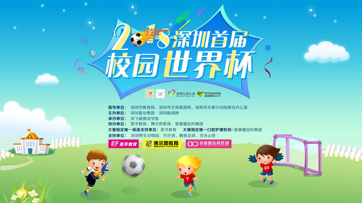 為貫徹“普及+提高”的校園足球方針,普及、傳播深圳校園足球,推動校園足球工作健康發展。由深圳市教育局、深圳市文體旅游局、深圳市關愛行動組委會辦公室指導,深圳新聞網主辦,風飛城青訓學院承辦的2018深圳首屆校園世界杯將于2018年7月10日-15日在深圳市仙桐體育公園足球場舉行。