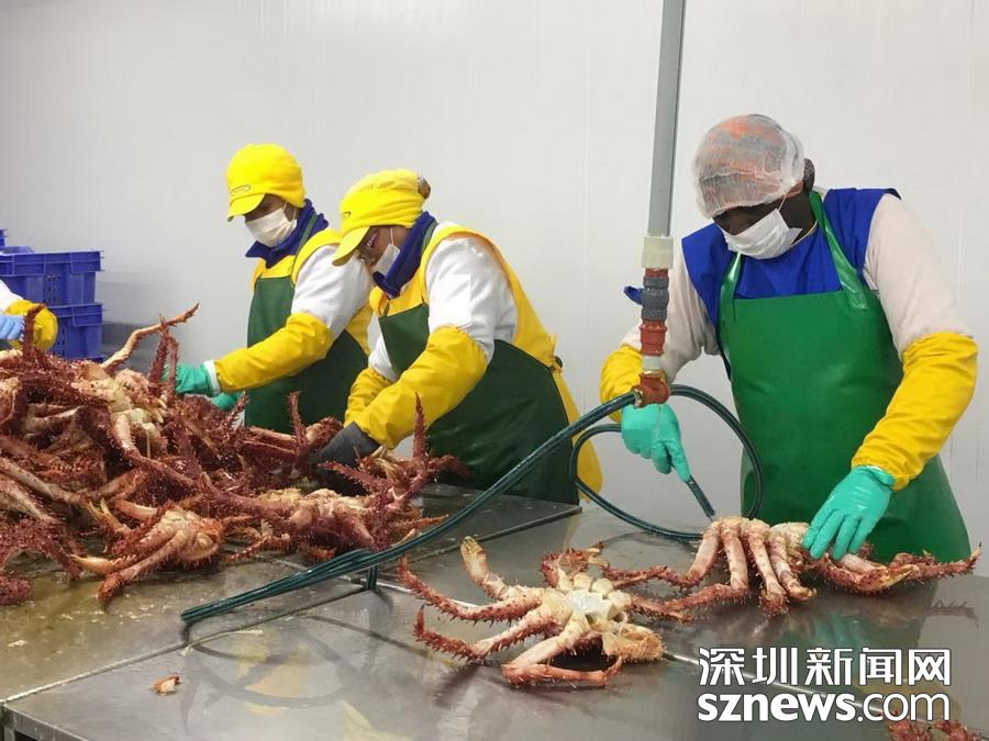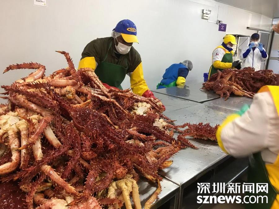 智力蜘蛛蟹加工基地, 產于南極洲海域。  李仁奇 攝