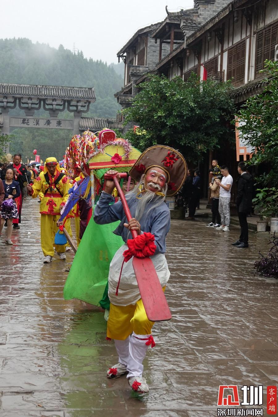 郪江古鎮古典風格的迎賓儀式和民俗風情展示。李仁奇攝