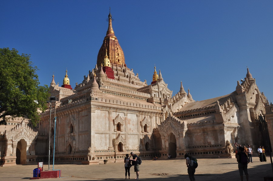 包括最古老的瑞西光塔,它金碧輝煌,可以媲美仰光大金塔;建筑最優美的阿蘭達塔造型、工藝超群,最能代表緬甸早期的古塔建筑;最高的大比紐塔高達70多米,相當于20層樓房;還有面積最大、墻體最厚的狄馬揚意塔等等。李仁奇攝