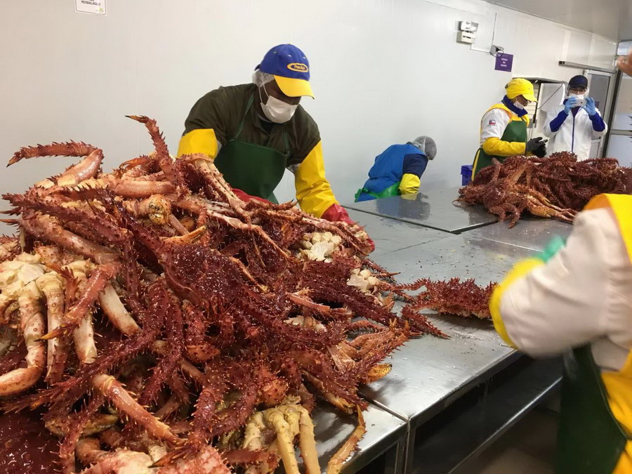 蜘蛛蟹(又名皇帝蟹)只產于南北兩極冰冷的海洋中,大個的重量可達5公斤以上。資深旅游者大多知道美國阿拉斯加的蜘蛛蟹是當地特產美味,但很多人并不了解智利、阿根廷接近南極洲的海域有比阿拉斯加蜘蛛蟹更大、味道更好、價格更低的同類海產品。李仁奇攝