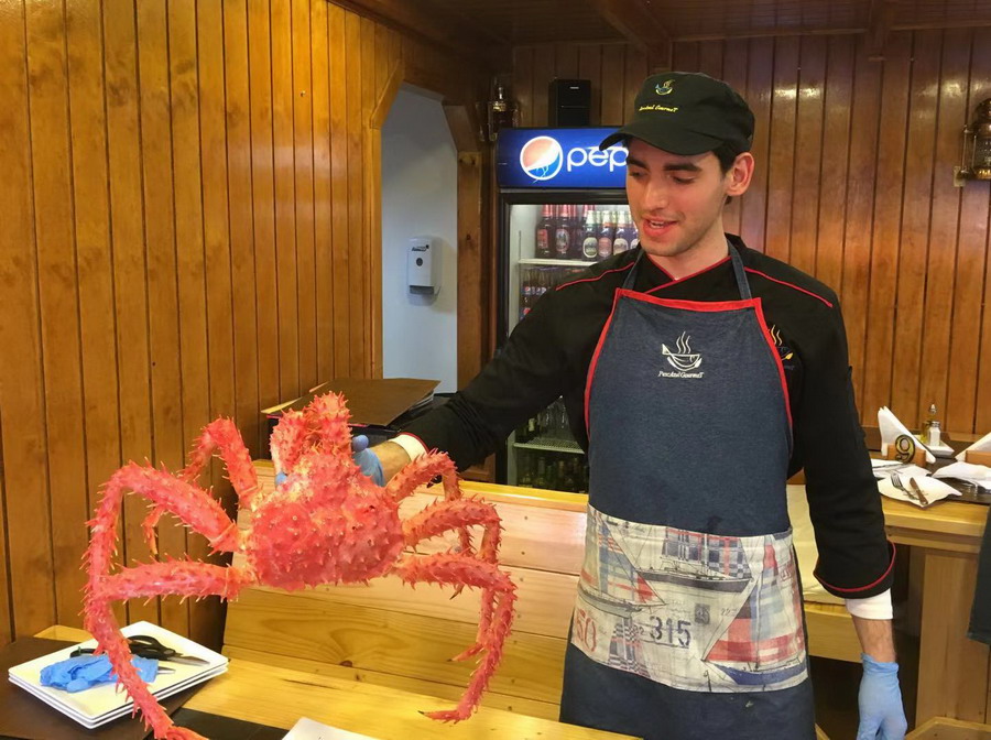 網友經當地旅行社的推薦到一家蜘蛛蟹貿易公司參觀并在其附設的餐廳品嘗了海鮮大餐。李仁奇攝