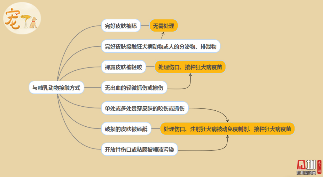 注:與非哺乳動物接觸則不需針對狂犬病進行處理。