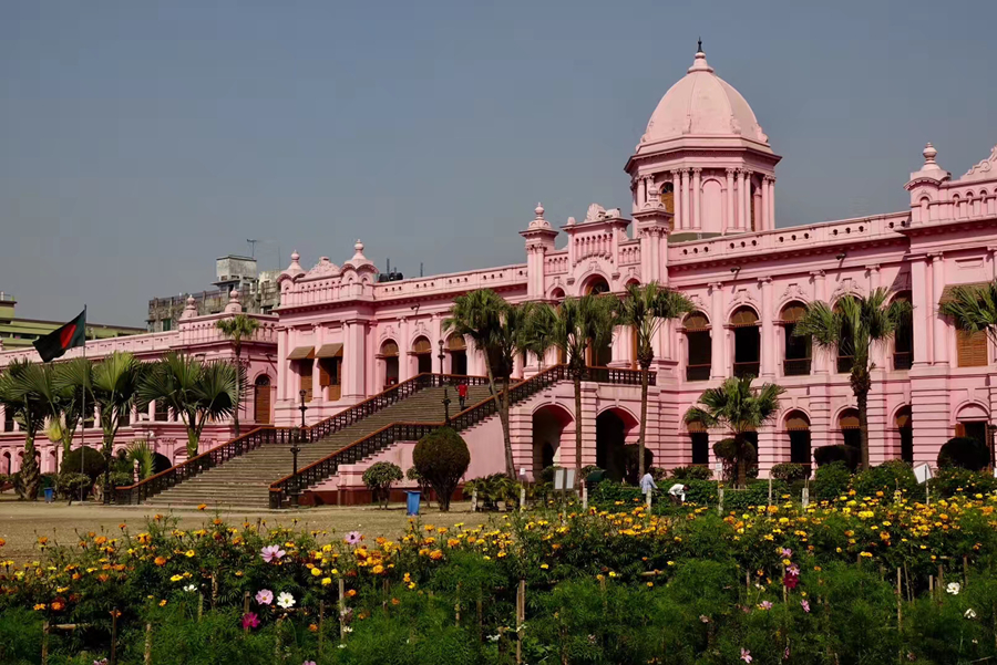 距孟加拉恒河渡口不遠的地方有一座粉紅色宮殿式的豪華建筑。那是1872年一位名叫阿赫桑曼濟勒的地主在法國人留下的倉房基礎上改建的私邸,后來曾在一次龍卷風襲擊時受創。李仁奇 攝