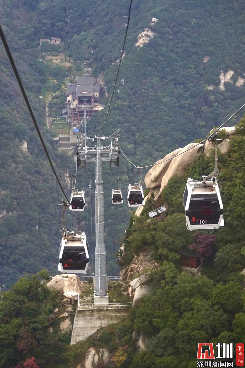 索道設備由法國波馬公司制造,整體安全與運營系統采用最尖端的客運索道技術。華山索道一覽。李仁奇攝。