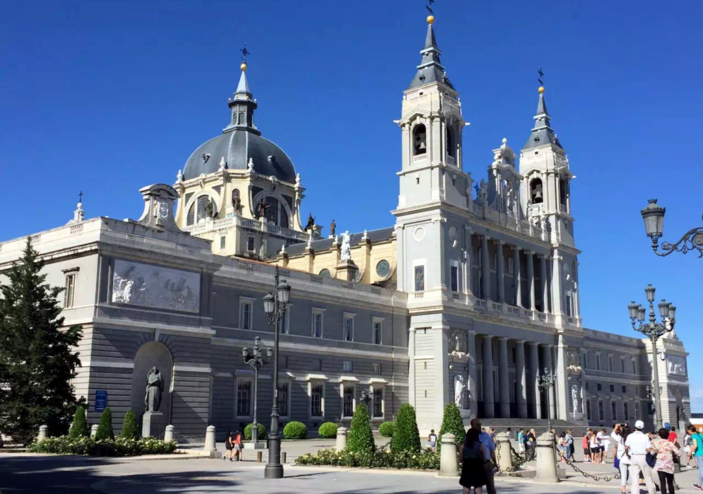 馬德里王宮的建筑融合了西班牙傳統王室建筑風格和巴洛克建筑風格,整體呈正方形,有附屬的教堂,宮內有2600多個房間,富麗堂皇,藏有無數的金銀器皿和繪畫、瓷器、壁毯及其他皇室用品。李仁奇 攝