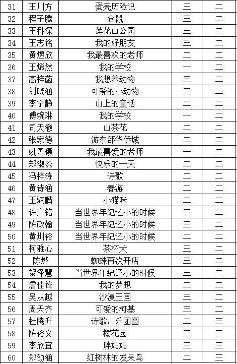 自2021年1月,活動征稿啟動以來,獲得了深圳市廣大中小學生、教師、文學愛好者的熱烈響應積極參與,吸引了深圳百余所學校的上萬人關注報名。現公布福田區華新小學晉級復賽名單如下: