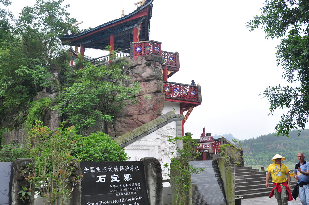 據傳,因其置地臨江處有一塊十多丈高的巨石,是女媧補天所剩的五彩石,故得名石寶,又因明末農民起義軍首領譚宏曾占據此處為山寨,因此得名石寶寨。李仁奇 攝