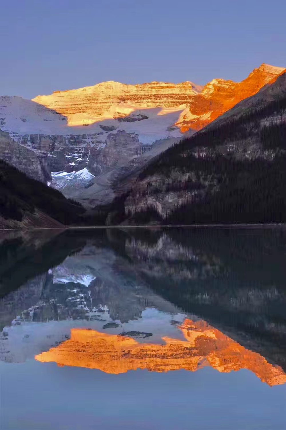 湖水晶瑩剔透,在鋸齒狀的山谷的擁環下,就像一塊寶玉。這塊“國寶”被印在加拿大20元的紙幣上。李仁奇 攝