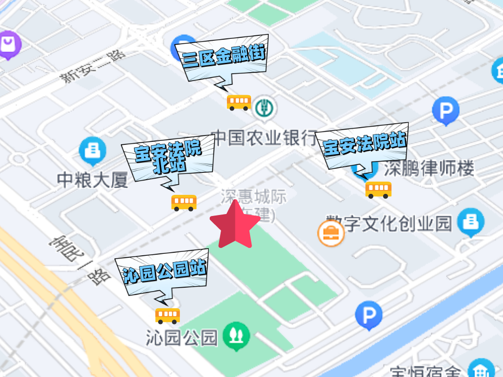 周邊公共交通站點(僅供參考):寶安法院北站(公交B832路、B904路、M210路),三區金融街站(公交603路、605路、B832路、M210路),沁園公園站(公交603路、605路、B904路、M210路、395路),寶安法院站(公交395路、603路、605路、B904路、M210路)
