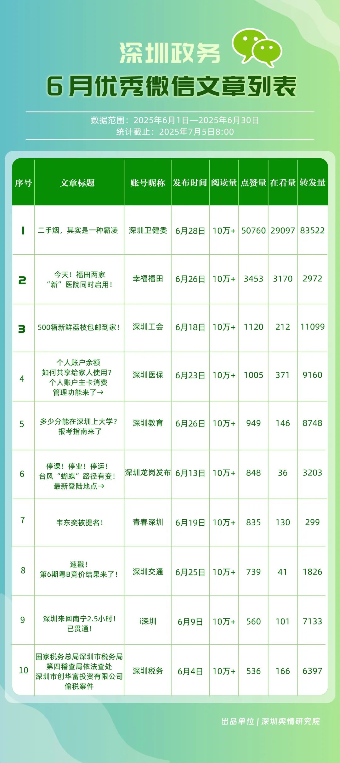 這個區發力登上榜單第一!6月“深圳優秀政務新媒體矩陣”榜單出爐