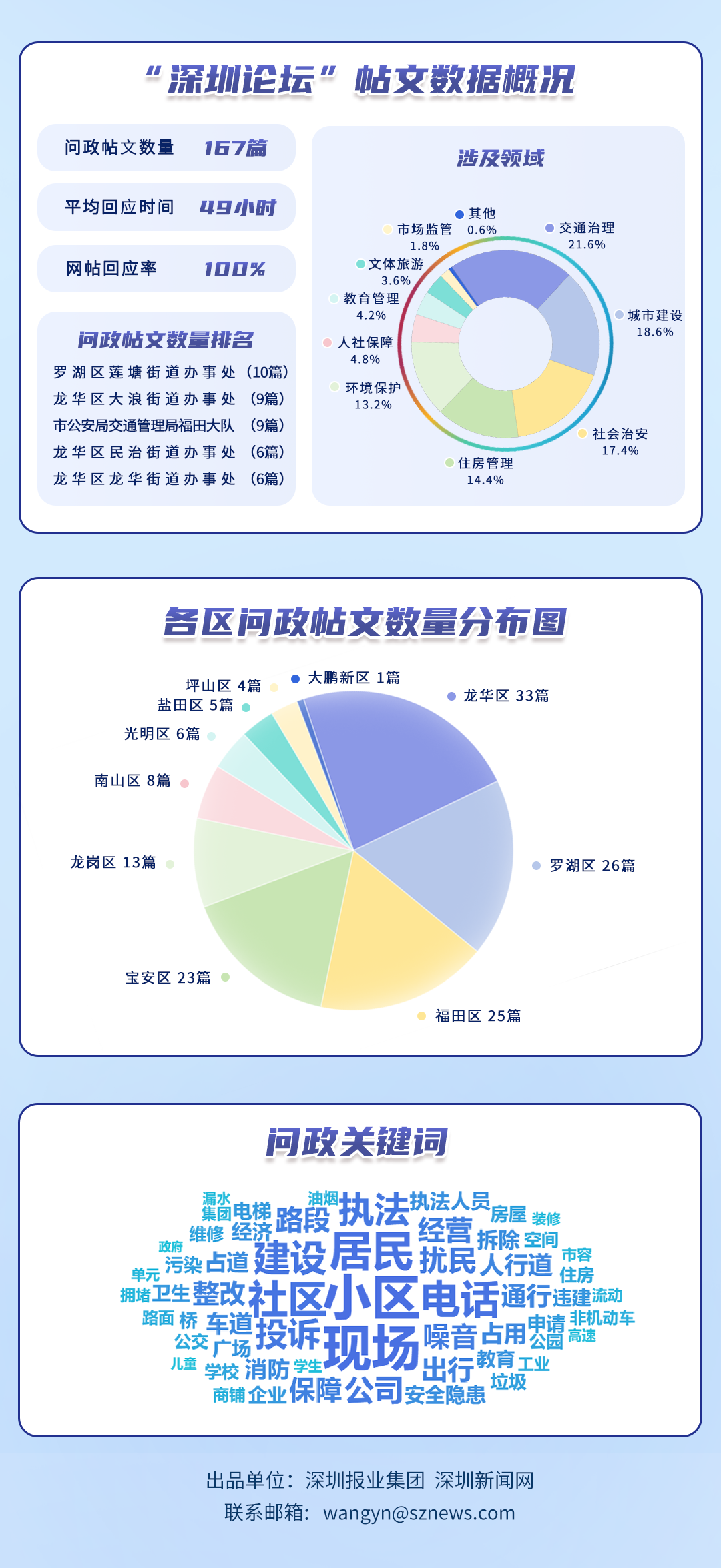 榜單帖文數據源自深圳論壇,均為網民點名希望涉事單位回應的網帖,共涵蓋77個單位、167篇網帖。所采集帖文發布時間為2025年8月1日至8月31日,采集截止時間為2025年9月2日。